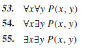 Suponga que ∃x∀y P(x, y) es verdadera y que el dominio de discurso es no vacío. ¿Cuál de los ejercicios entre el 53 y el 55 debe ser verdadero también? Si la afirmación es verdadera, explique; de otra manera, dé un contraejemplo.